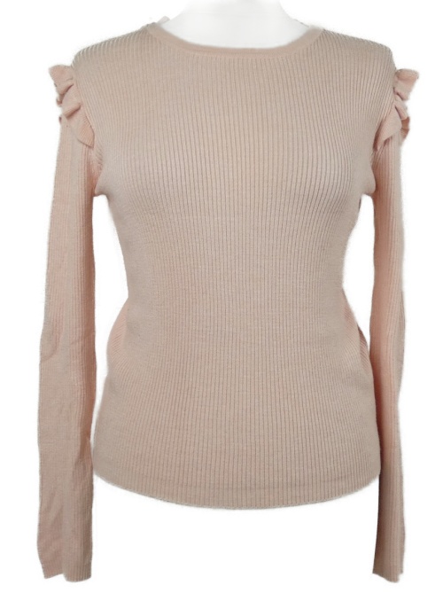 Dámský růžový žebrovaný svetr s volánky Atmosphere