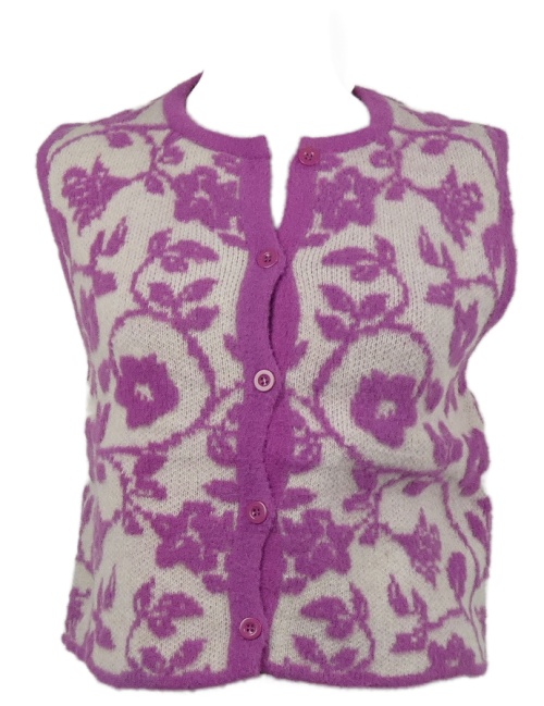 Nové - Dámská fuchsiovo-bílá kytičkovaná svetrová propínací vesta Zara