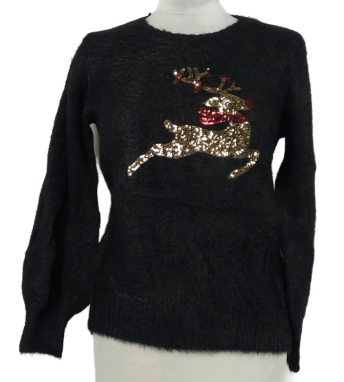 Dámský černý chlupatý svetr se sobem z flitrů Peacocks