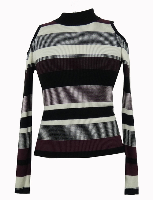 Dámský barevný pruhovaný žebrovaný crop svetr s volnými rameny Atmosphere