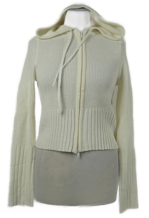 Dámský smetanový propínací crop svetr s kapucí H&M