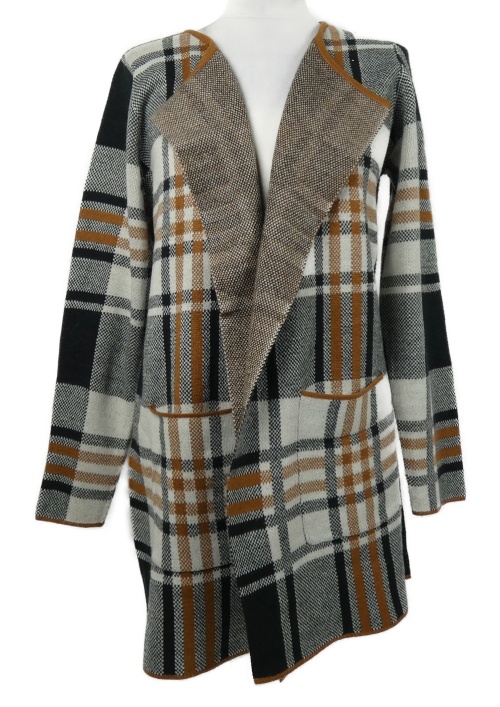 • Dámský černo-skořicovo-bílý kostkovaný svetrový cardigán Laura Torelli