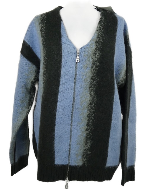 • Dámský světlemodro-khaki pruhovaný propínací oversized svetr The Ragged Priest
