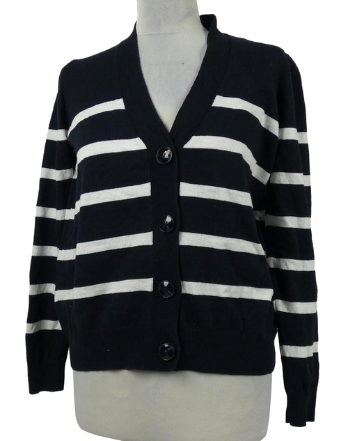 Dámský tmavomodro-bílý pruhovaný propínací oversized svetr Papaya