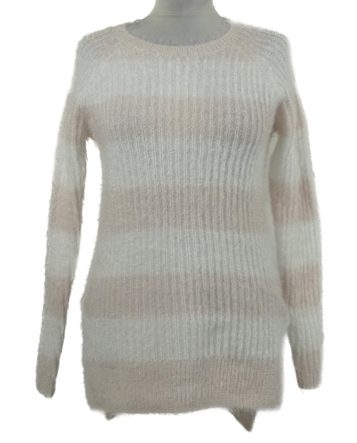 • Dámský bílo-světlerůžový pruhovaný chlupatý dlouhý svetr F&F