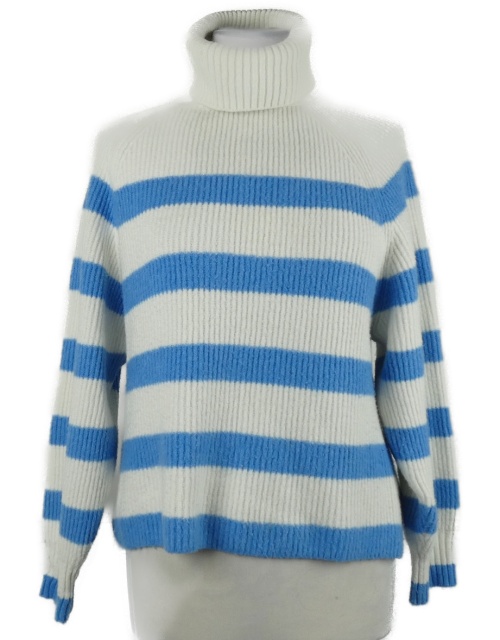 Dámský bílo-modrý pruhovaný svetrový rolák zn MNG