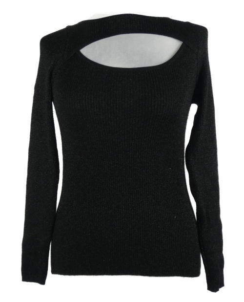 Dámský černý třpytivý žebrovaný svetr s průstřihem F&F