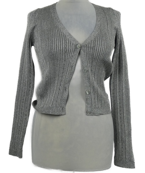 Dámský stříbrný žebrovaný propínací lehký svetr MNG