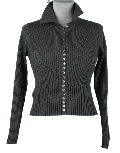 • Dámský tmavošedý žebrovaný propínací crop svetr s límečkem MNG