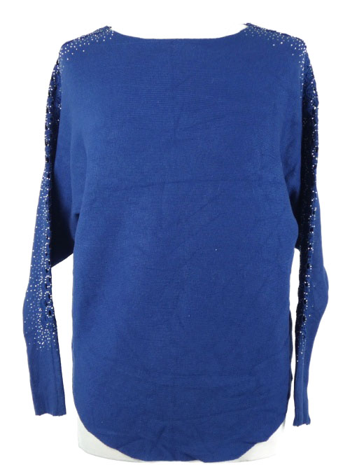 Dámský tmavomodrý volný svetr s krajkou a kamínky