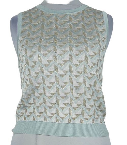 • Dámská světlemodro-zlato-bílá vzorovaná svetrová crop vesta Asos