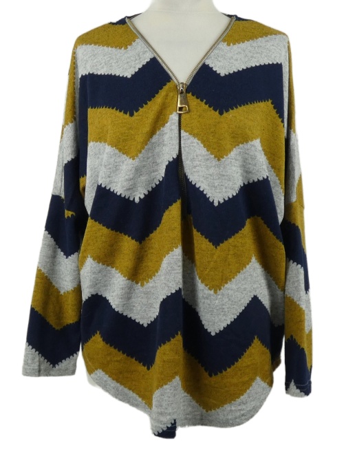 Dámský tmavomodro-hořčicovo-šedý vzorovaný lehký svetr Apricot