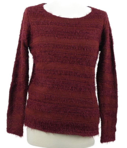 Dámský vínový pruhovaný chlupatý svetr C&A