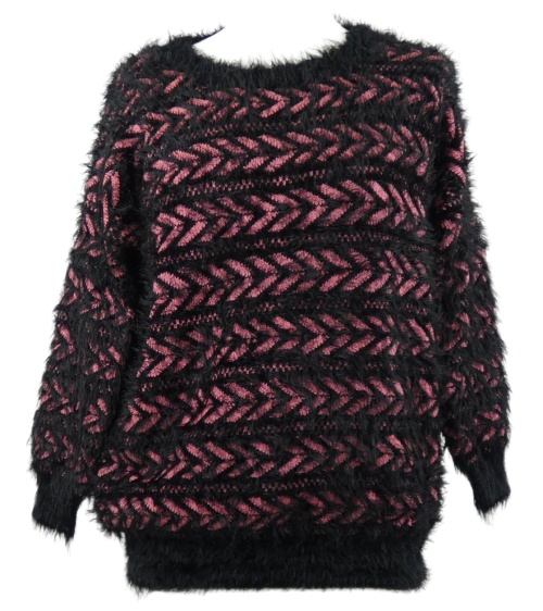 Dámský černo-růžový vzorovaný chlupatý svetr Qed London