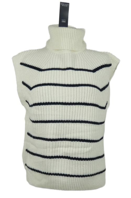 • Nové - Dámská bílo-tmavomodrá purhovaná svetrová vesta s rolákem M&S