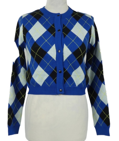 • Nové - Dámský modro-černo-bílý károvaný crop propínací svetr Primark
