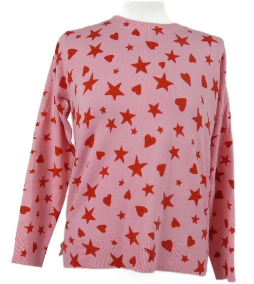 Dámský růžovo-červený srdíčkovaný svetr s hvězdami M&S