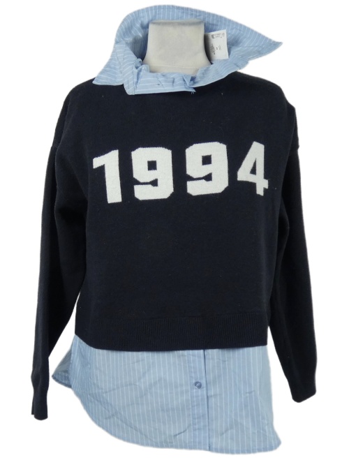 • Nové - Dámský tmavomodrý svetr s modrou proužkovanou halenkovou vsadkou Primark
