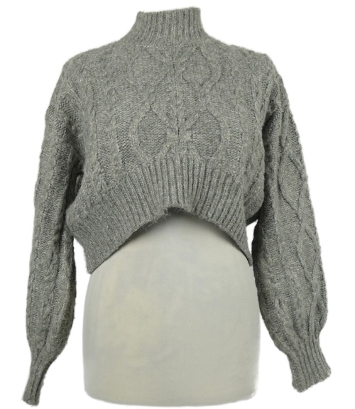 Dámský šedý vzorovaný crop svetr se stojáčkem Primark
