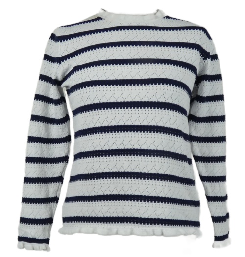 Dámský bílo-tmavomodrý pruhovaný ažurový lehký svetr Savida