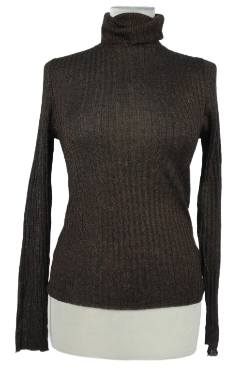 • Dámský hnědo-černý melírovaný žebrovaný lehký svetr s rolákem Primark