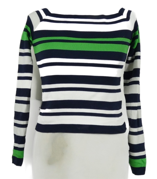 Dámský bílo-tmavomodro-zelený pruhovaný crop svetr Topshop