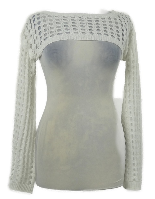 Dámský bílý crop svetr s dirkovaným vzorem