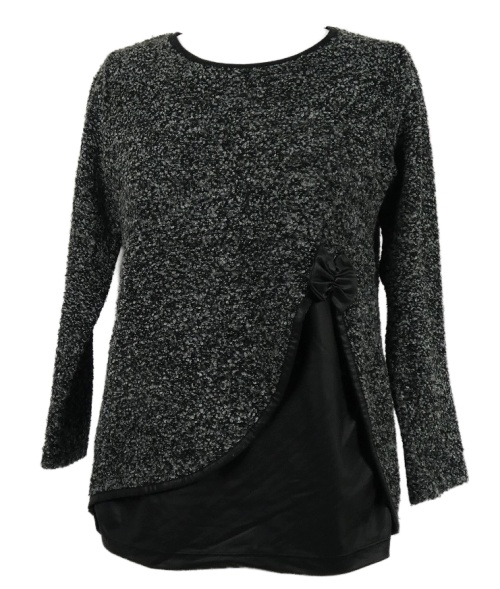 Dámský černo-šedý svetr s rozparkem a potaženou vsadkou