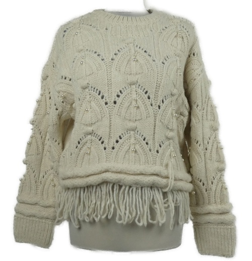Dámský smetanový ažurový svetr s perlami River Island