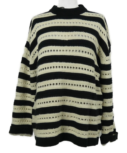 Dámský černo-smetanový pruhovaný ažurový oversizedsvetr H&M