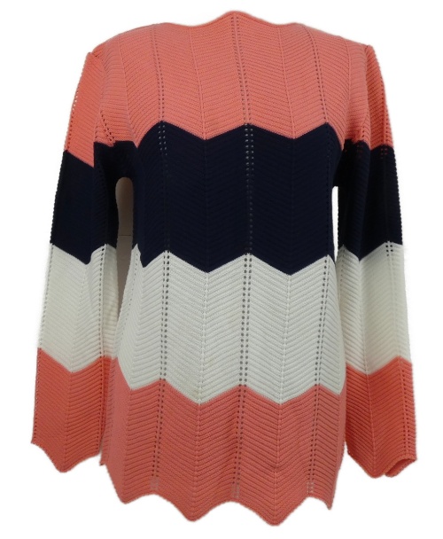 Dámský růžovo-tmavomodro-bílý vzorovaný ažurový svetr