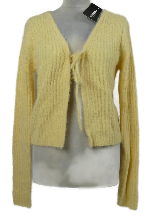 Nové - Dámský žlutý žebrovaný chlupatý svetrový cardigán na zavazování PrettyLittle Thing