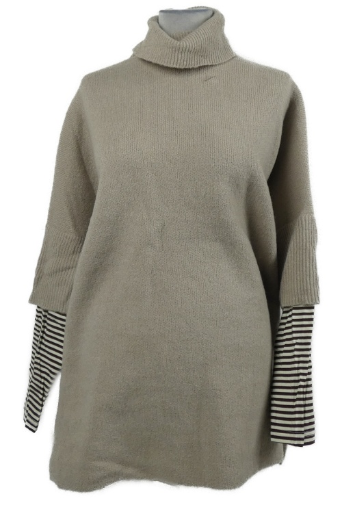 Dámský béžový oversized svetr s pruhovanými rukávy a rolákem Next