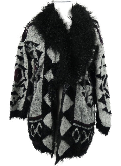 • Dámský černo-šedo-vínový chlupatý svetrový cardigán s kožíškem Firetrap