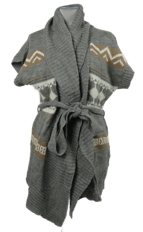 Dámský šedý svetrový pléd se vzorem a páskem Romeo & Juliet