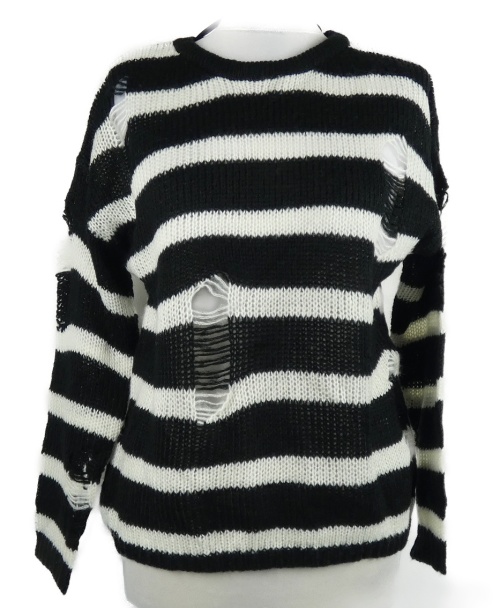 Dámský černo-bílý pruhovaný svetr s dírami Primark