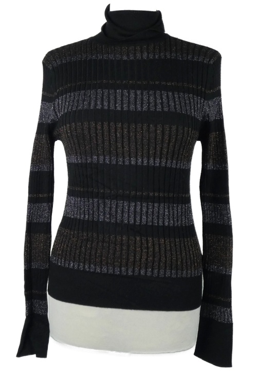 Dámský černo-stříbrno-bronzový žebrovaný svetr s rolákem