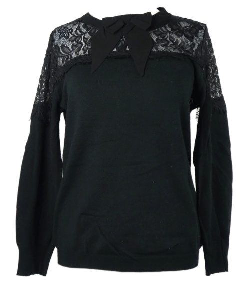Dámský černý svetr s krajkovým výstřihem a mašlí