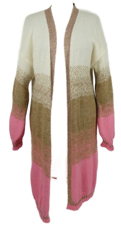 Dámský bílo-béžovo-růžový pruhovaný svetrový cardigán