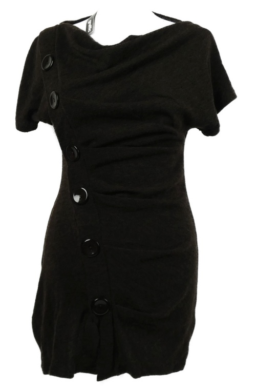 Nové - Dámská kávová svetrová šatová tunika s knoflíky Graffic