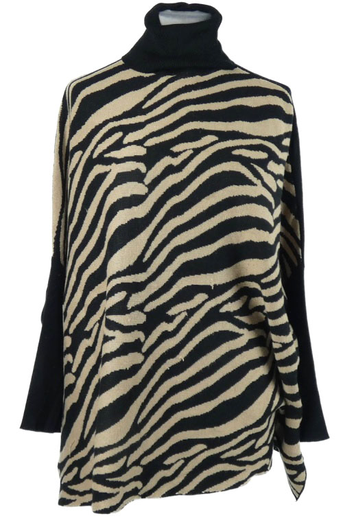• Dámský černo-béžový vzorovaný volný svetr s rolákem Blue Vanilla