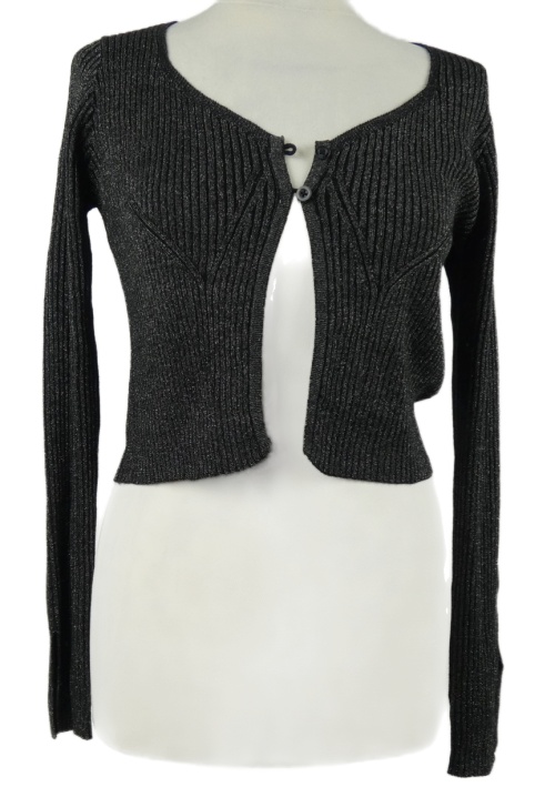 Dámský černo-stříbrný třpytivý propínací crop svetr Primark