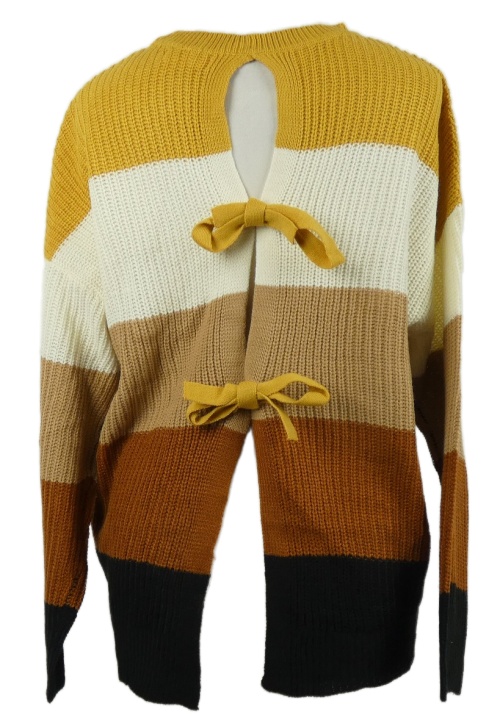 Dámský barevně pruhovaný svetr s mašlemi na zádech