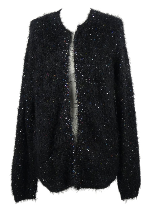 Dámský černý chlupatý svetrový cardigán s flitry Monsoon
