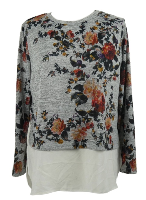 Dámský šedý květovaný lehký svetr s šifonovou vsadkou Oasis