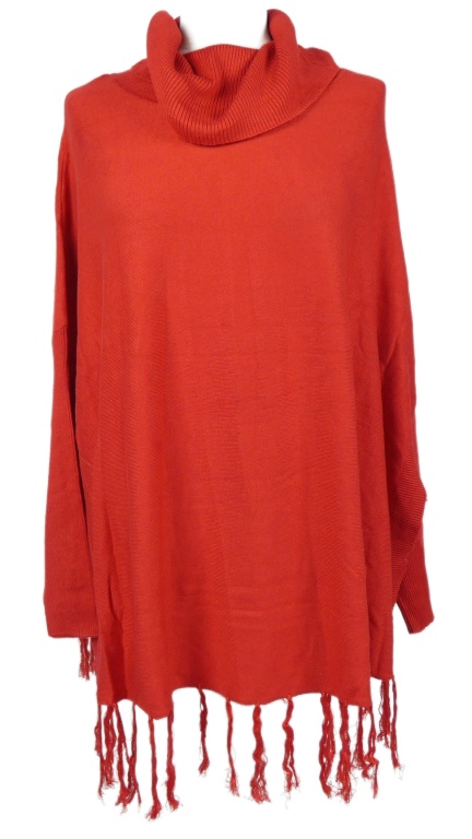 Dámský červený svetr s rolákem a třásněmi Bonprix