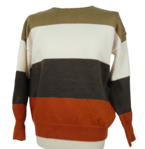 Dámský béžovo-smetanovo-hnědo-cihlový pruhovaný sver