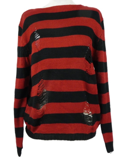 Dámský červeno-černý pruhovaný svetr s průstřihy Shein