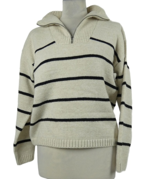 Dámský béžovo-černý pruhovaný svetr s límečkem George