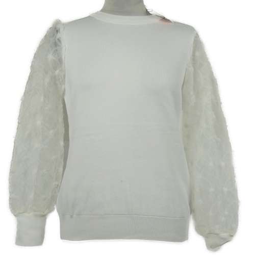 Nové - Dámský bílý svetr s tylovými vzorovanými rukávy Savida